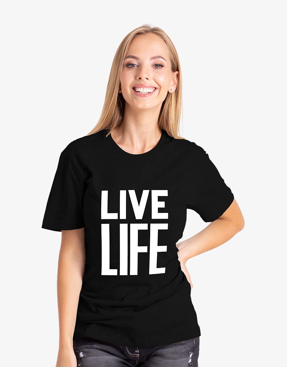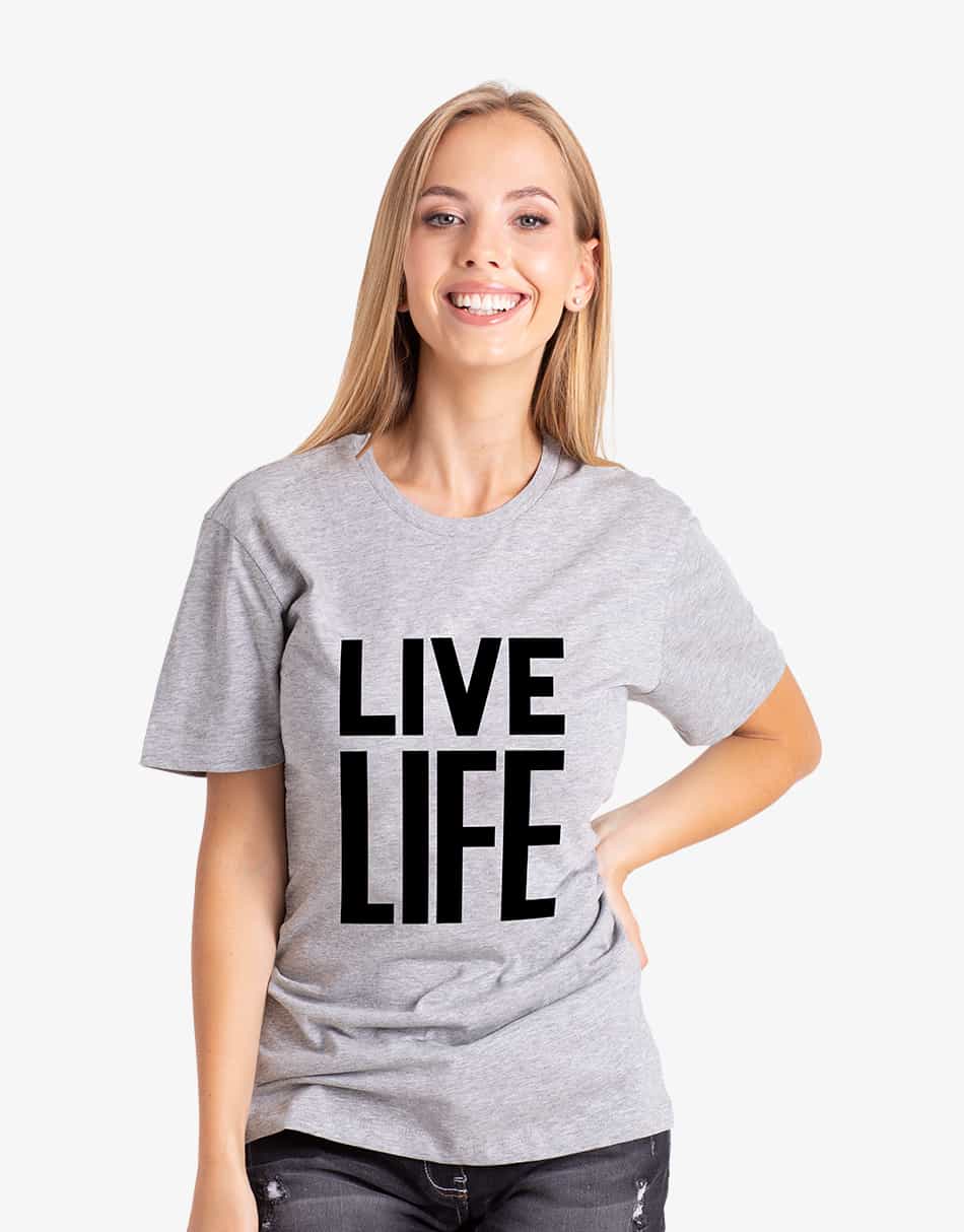 This classic crew neck Printed T-Shirts for Women feature a printed “LIVE LIFE” on the body and are made from soft organic cotton. For versatile styling, this basic yet fundamental T-shirt features a Crew Neck collar, short sleeves, and a consistent block colour throughout. Finally, the brand’s signature is added to complete the image. For a complete high-end designer style, pair with your favourite denim jeans and a pair of Nike sneakers.